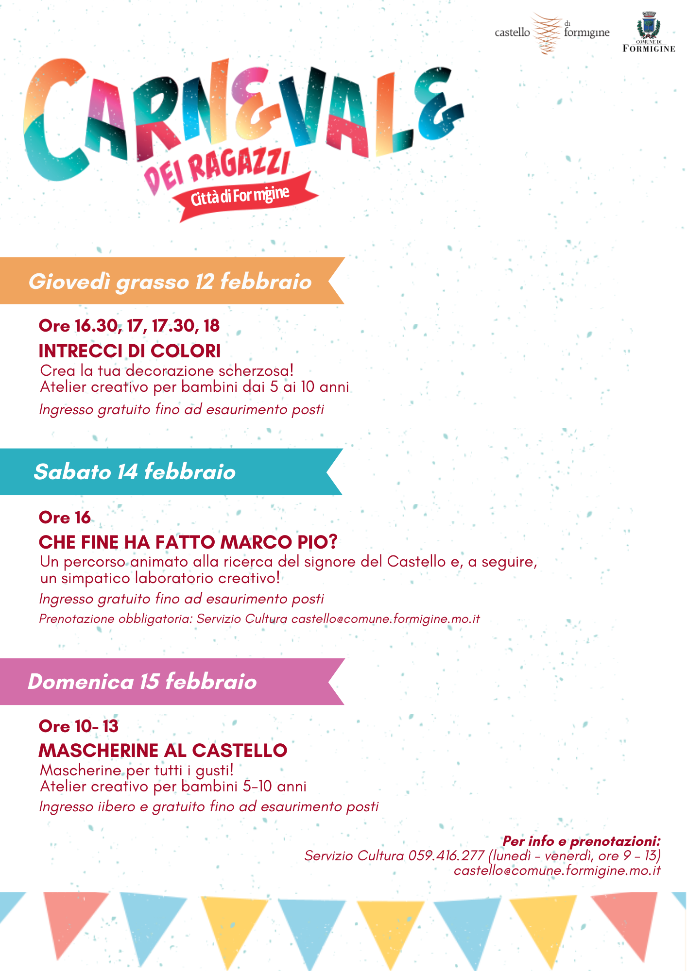 - mandare una mail all’indirizzo castello@comune.formigine.mo.it indicando un recapito telefonico;